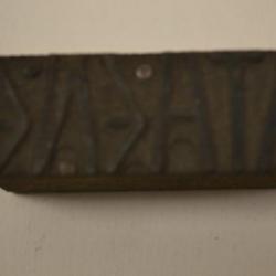 Donated by John Damianos. The printing block was used in a linotype printing machine. Linotype presses allowed for the casting of entire lines to be printed at a time. Linotype printing was eventually succeeded by lithograph printing and computer typesetting during the 1960's and 1970's. This printing block was used by the Chicago-based, Greek Art Printing Company that was owned and operated by Aristotle Damianos. The Greek Art Printing Company was responsible for the printing of a wide range of materials, including wedding invitations, invoices, flyers, programs, letterhead, etc., for Greek businesses, organizations, institutions, and individuals in the Chicago area, and elsewhere.