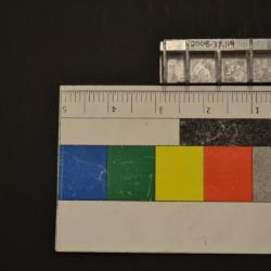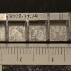 Donated by John Damianos. The printing block was used in a linotype printing machine. Linotype presses allowed for the casting of entire lines to be printed at a time. Linotype printing was eventually succeeded by lithograph printing and computer typesetting during the 1960's and 1970's. This printing block was used by the Chicago-based, Greek Art Printing Company that was owned and operated by Aristotle Damianos. The Greek Art Printing Company was responsible for the printing of a wide range of materials, including wedding invitations, invoices, flyers, programs, letterhead, etc., for Greek businesses, organizations, institutions, and individuals in the Chicago area, and elsewhere.