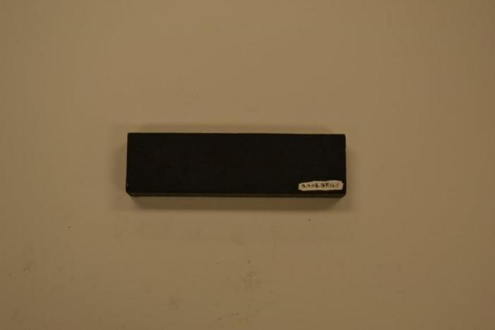 rectangular wooden block, stained with black lead ink material heavily on all sides.