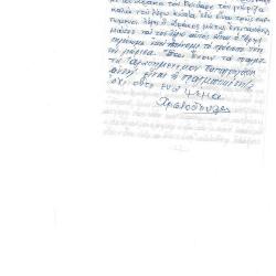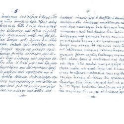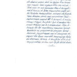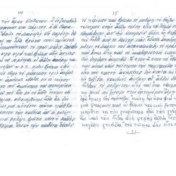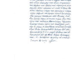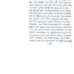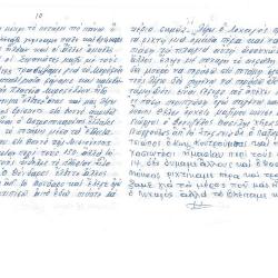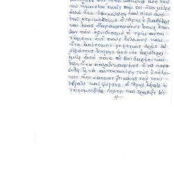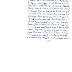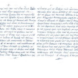 Hand written letter between father and son. The letter is broken up into sixteen different pages. Each piece of paper is folded in half and there is writing on each of the sides. Each page is also numbered in the center of the top of the side and at the bottom of each page is the "#" symbol. The letter is written in blue ink, however there is one page that seems to be separate from the full letter itself, is slightly larger and written with black ink. All is written in Greek.