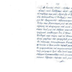 The letter was written by Christodolos Stathis to his father, Rev. Gregory Economou. It describes the battle between the militia of the village of Vrangiana, in the Agrafa region, against Aris Velouhiotis, the "Capitanos" of the EAM-ELAS Greek resistance army. Aris died at this June, 1945 battle.