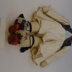 This object was found in collections, so nothing is known about its origin. However, it is modelled after the evzone guards. Today, the evzone are members of the presidential guard. They guard the Greek Tomb of the Unknown Soldier, the Presidential Mansion, and the gates to the Evzones camp in Athens. Their distinctive uniform is modelled after the uniforms worn by the klephts, who resisted Ottoman occupation in Greece.
