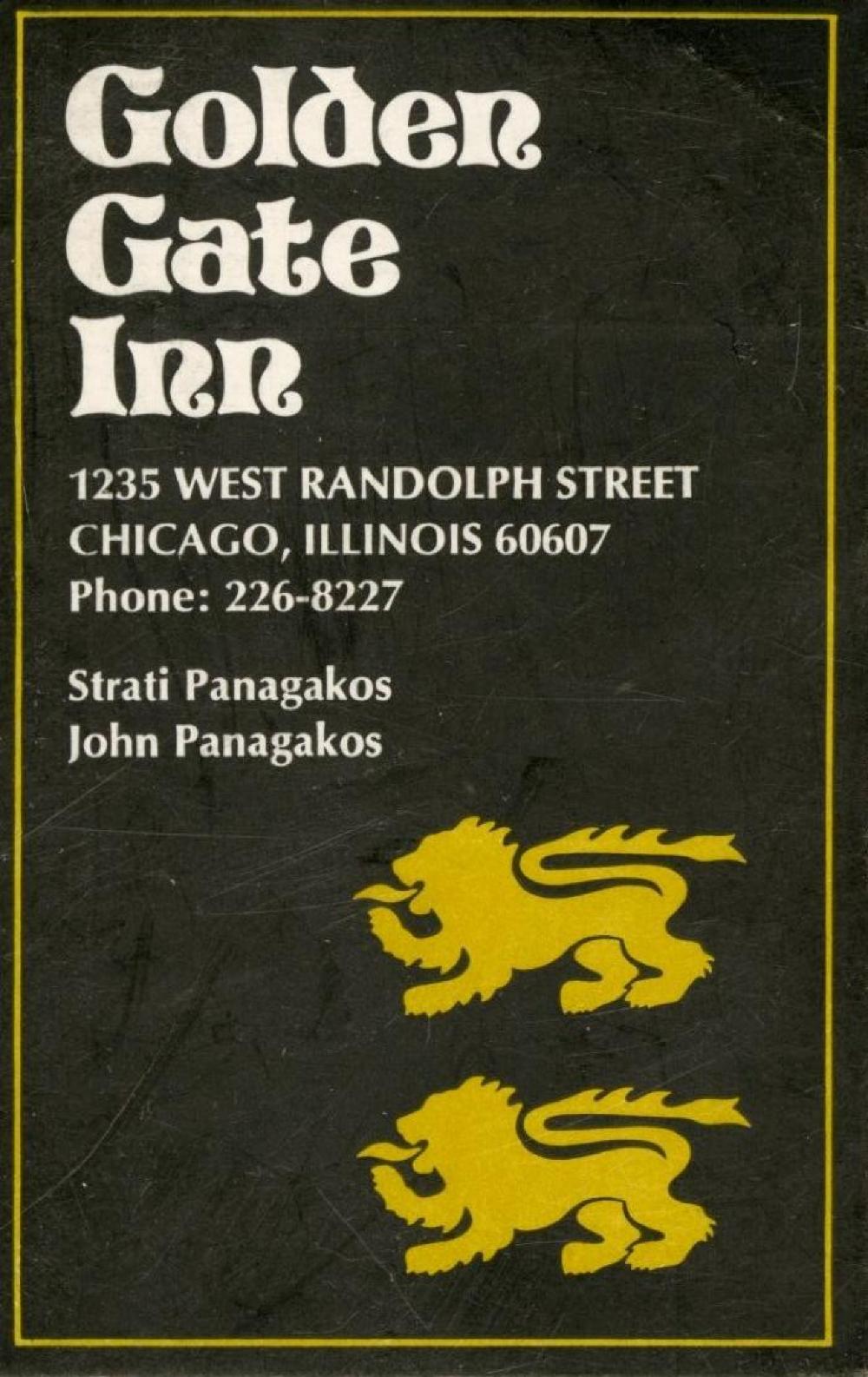 Business card from the Golden Gate Inn, located at 1235 W. Randolph St. in Chicago, Illinois. The restaurant was later renamed the Randolph Market Cafe.