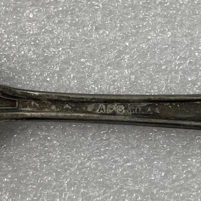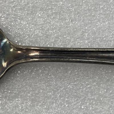 Slightly faded silver spoon. The word "RICHELIEU" is printed on the top of the handle and "APS CO. AA" is printed on the bottom side of the handle.