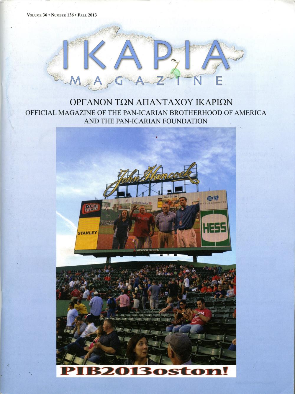 IKAPIA Magazine, the Official Magazine of the Pan-Icarian Brotherhood of America and the Pan-Icarian Foundation of America, Volume 36•Number 136•Fall 2013.