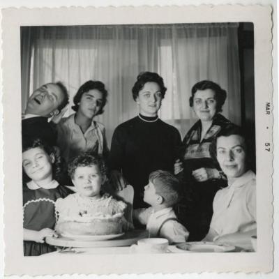 LOCATION: South Shore, Chicago IL YEAR: 1957 PEOPLE IN PHOTO: The 2nd birthday party for Diane Alexander White with Uncle John Cotsones, Lillian Mavros Apostolou, Angeline Costas Cotsones, Dorothy Cotsones Mavros Kountoupis, below, Jeanne Cotsones Lum Bernstein, Diane in high chair and Michael Cotsones and Diane's Mom, Georgia Cotsones Alexander.