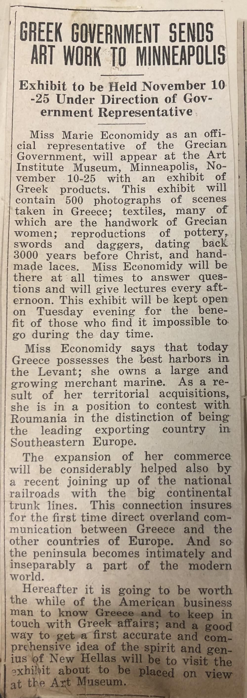 Clipping, Newspaper, National Hellenic Museum, https://collections.nationalhellenicmuseum.org/Detail/objects/13928. Accessed 12/19/25.