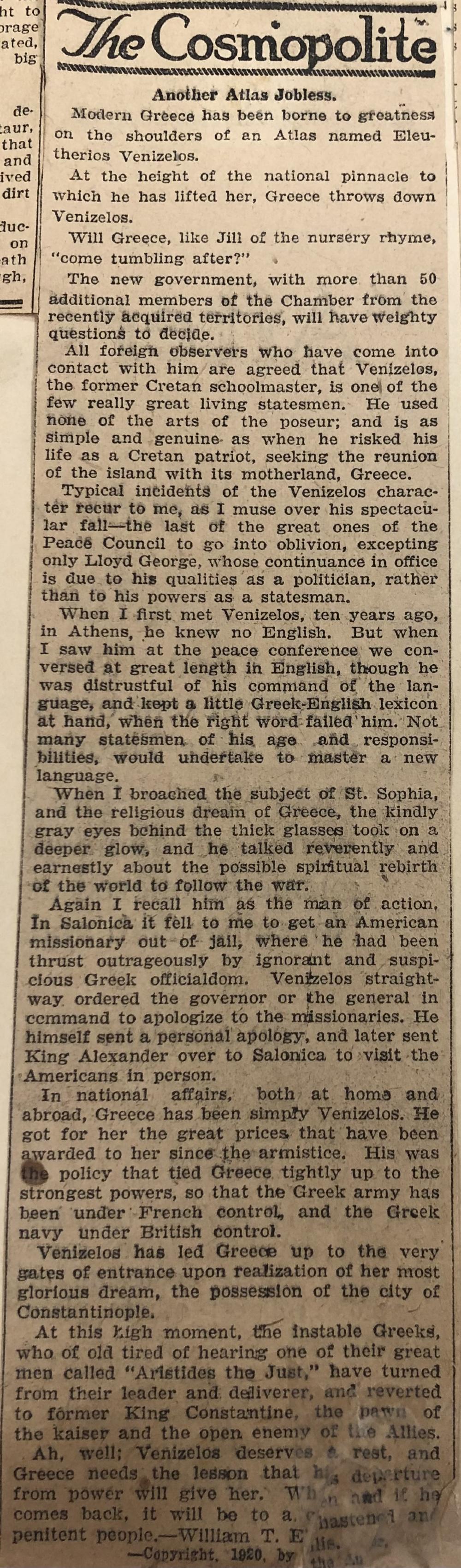 Clipping, Newspaper, National Hellenic Museum, https://collections.nationalhellenicmuseum.org/Detail/objects/13952. Accessed 12/19/25.
