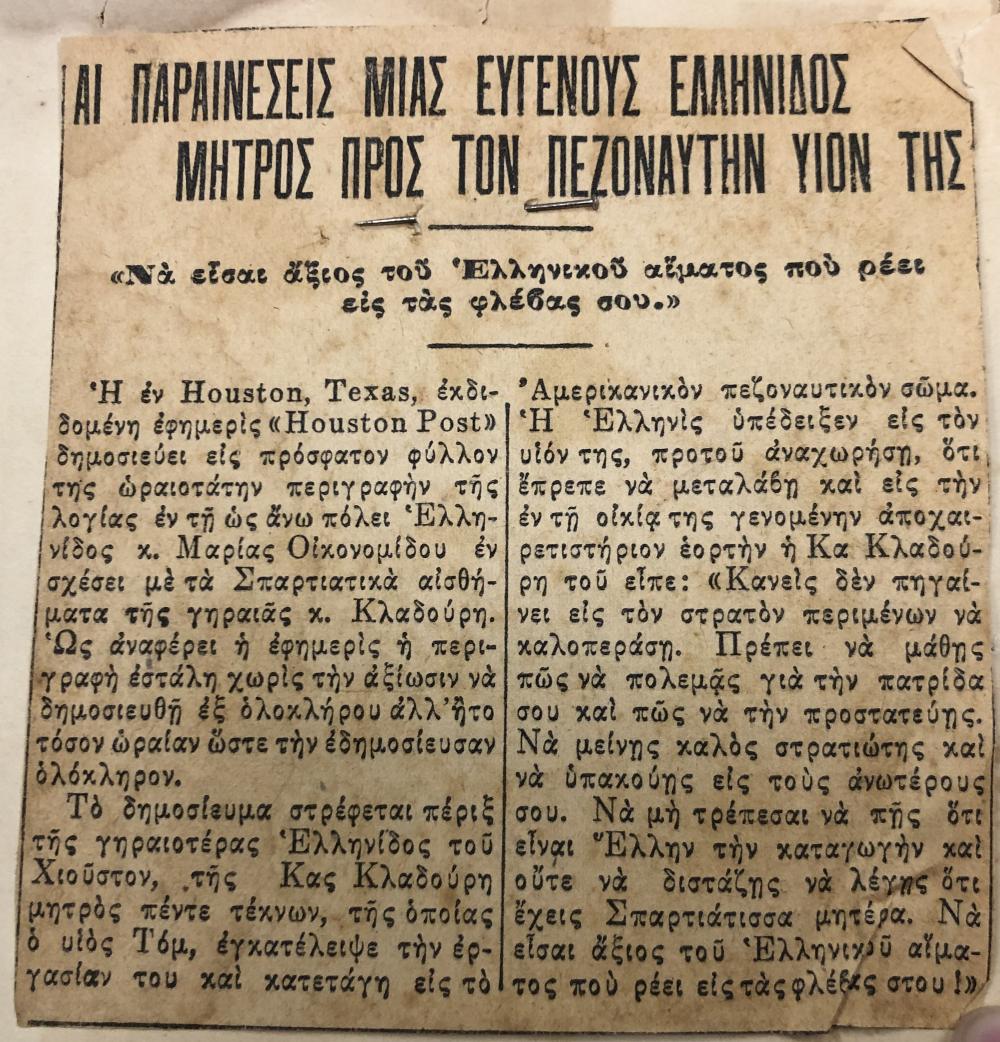 Clipping, Newspaper, National Hellenic Museum, https://collections.nationalhellenicmuseum.org/Detail/objects/14010. Accessed 11/12/25.
