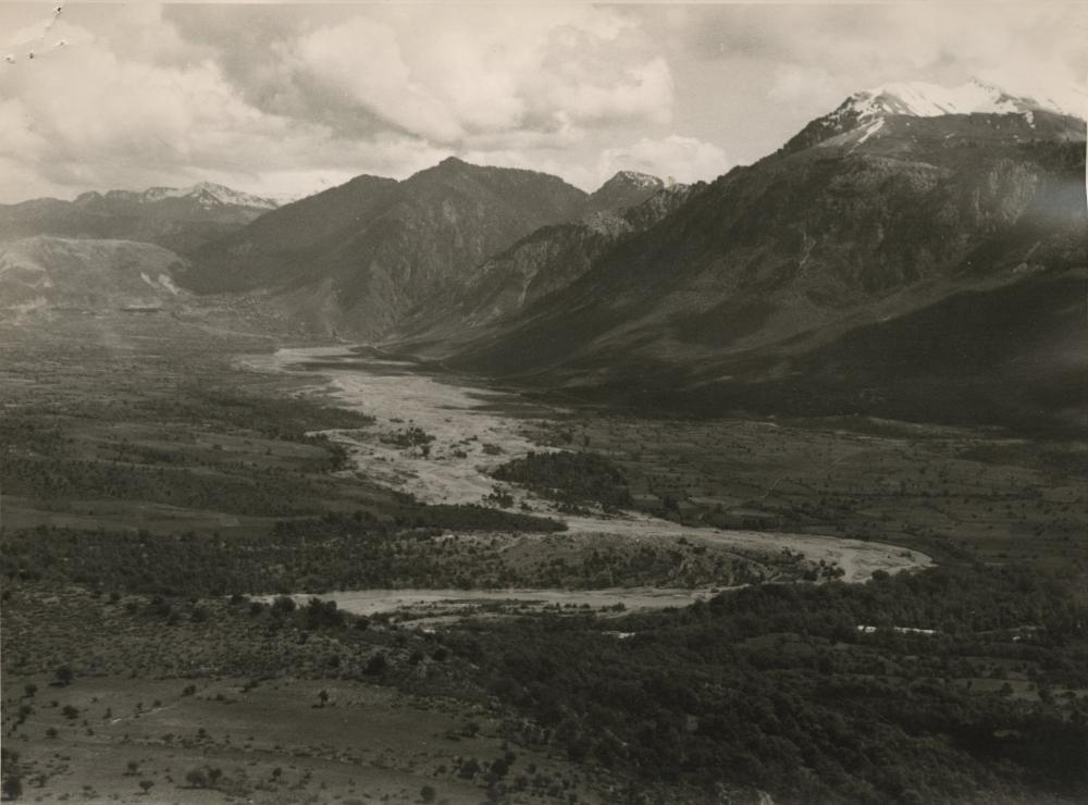 From donor: The Valley of the AOOS (Konitsa Plain). Work has begun on canalizing the river bed and reclaiming the rich soil (see grey areas) on either side.
