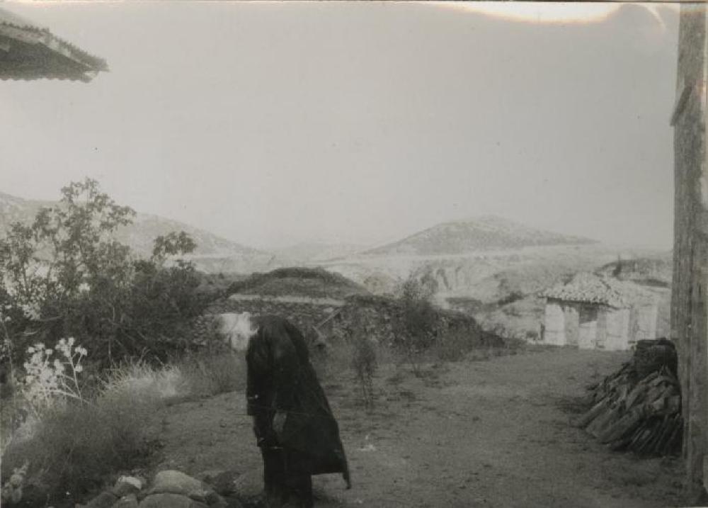 From donor: Meteora. On the Agios Stephanos monastery, monk Paulos is more than 100 years old. A human ghost.