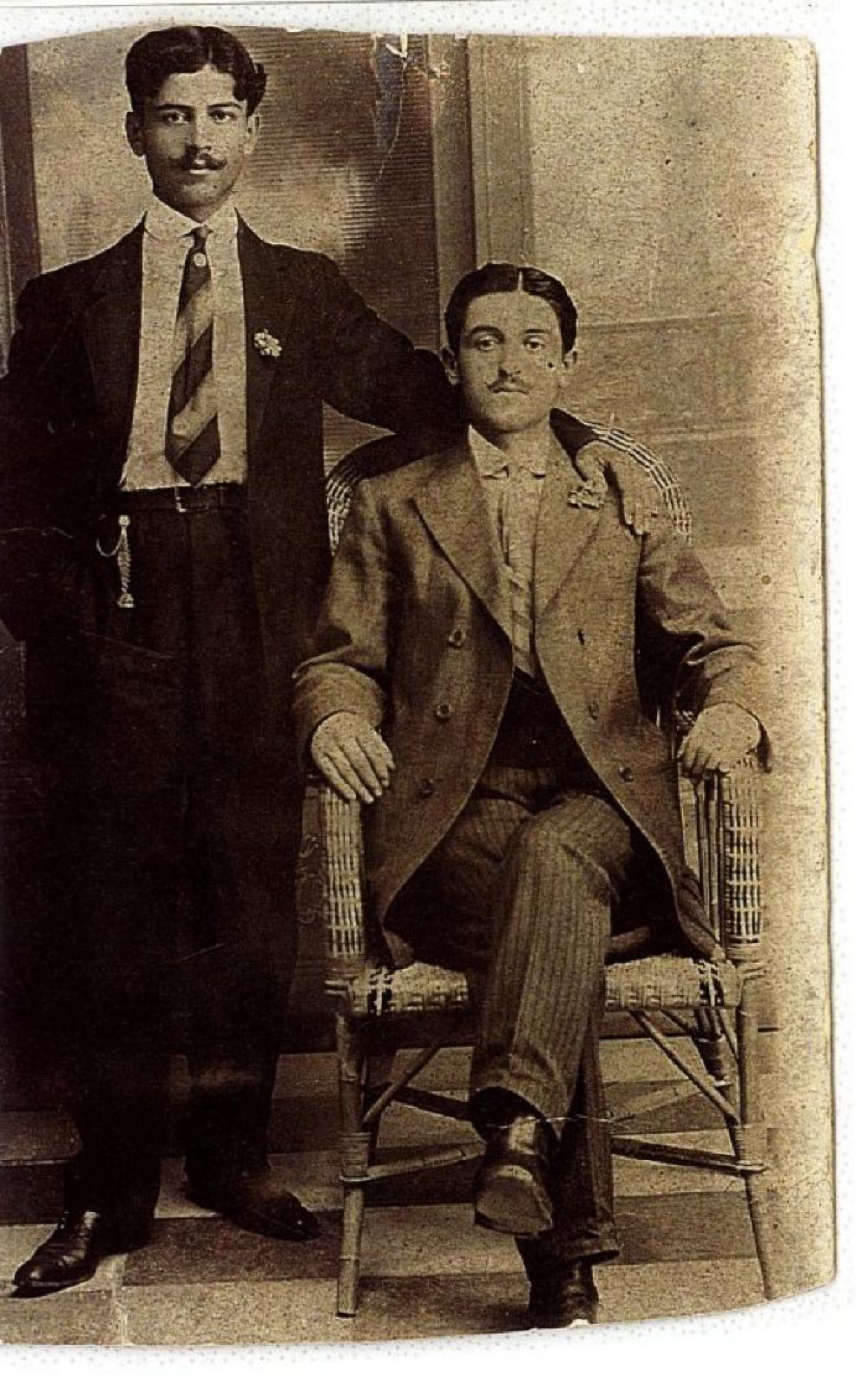 Formal Portrait of John Malapanis and friend arrive from Greece