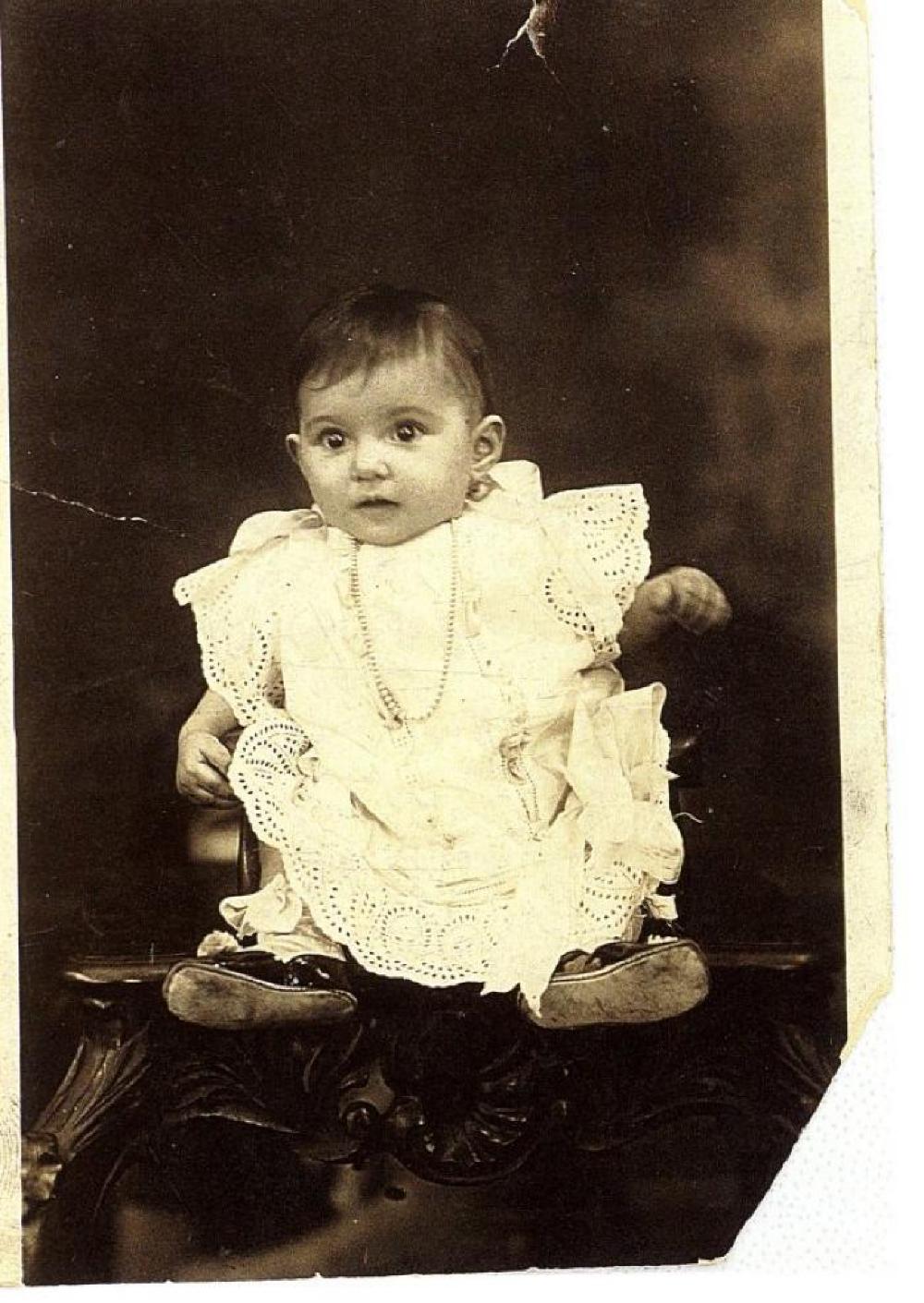 Formal portrait of infant. Katherine Kokos. Cousin of Bertha