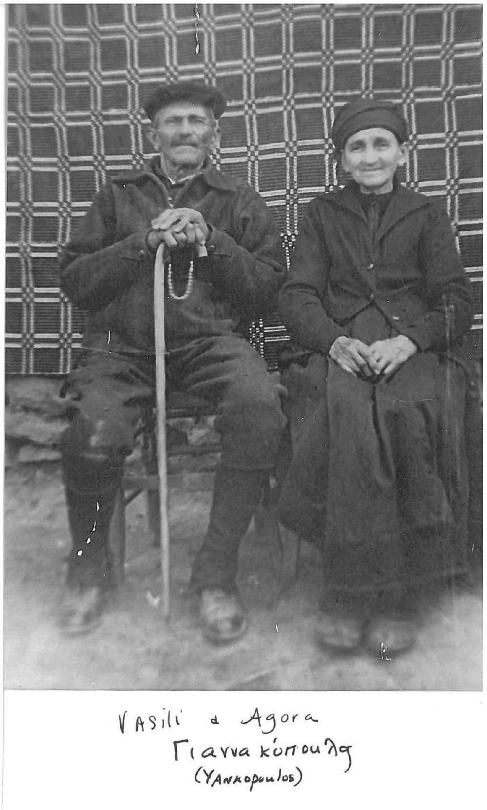 The people pictured are Vasili and Agora Yankopoulos. They owned a farm in Votani, which is a suburb about ten miles away from Kastoria in Macaedonia. Agora spun and dyed the wool from their sheep and wove blankets. These heavy blanket rugs were called Flokati. They were taken into the mountains by the men and boys when they took their flocks out to graze for days at a time. It was the equivilent of a sleeping bag today.