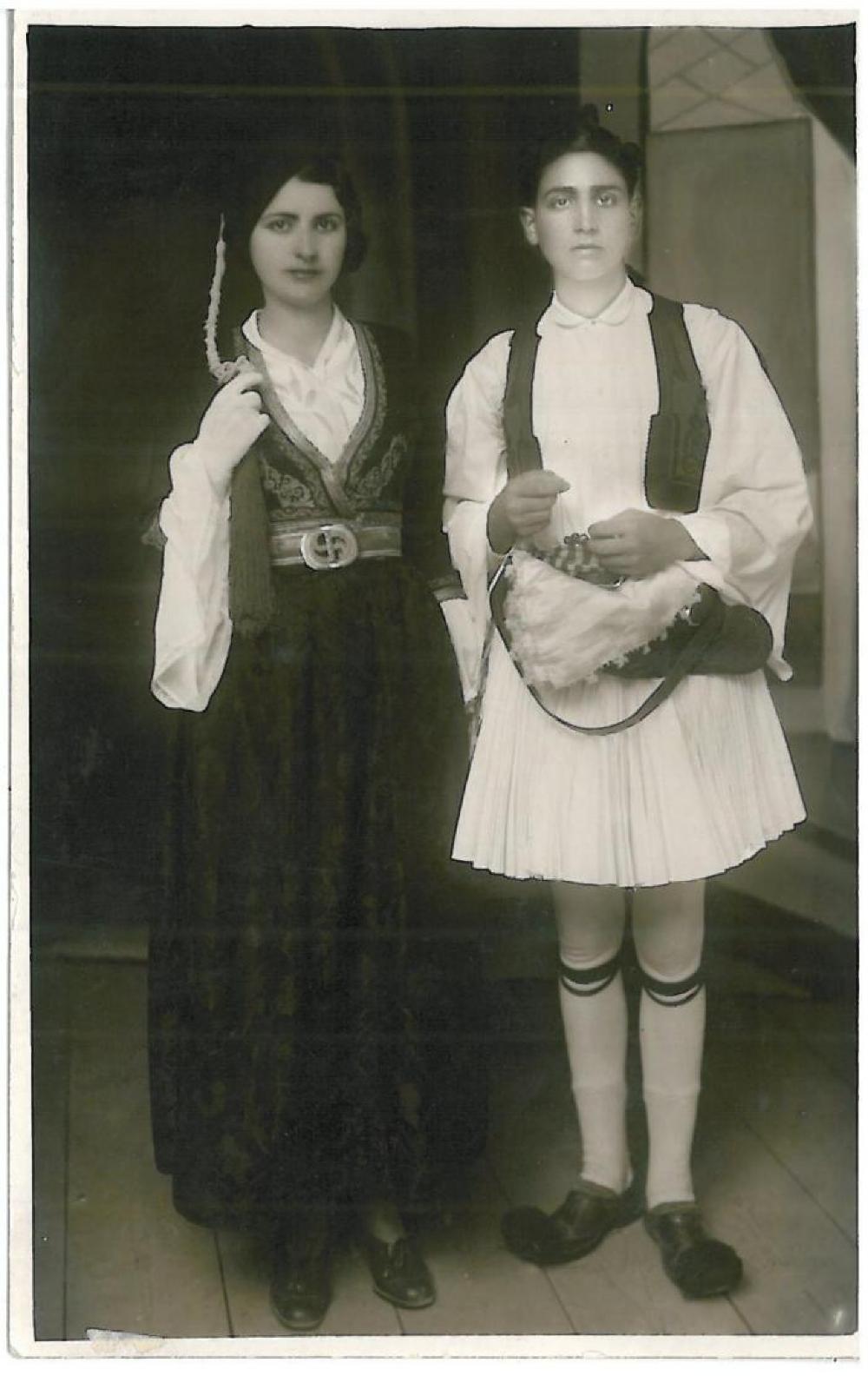 Aristotle T. Flessor donated photographs of his family from Greece. This photo is of two unidentified Greek teenagers, taken in Tripoli, Greece, in 1935. They are wearing traditional Greek costume.