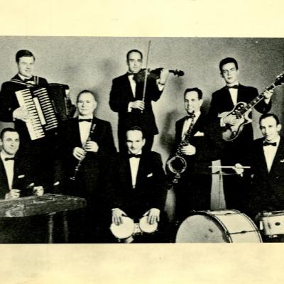 Picture taken in 1957 shows the complete band as it was most readily recognized in the '50s, '60s, and '70s. 100,000 copies of the picture were printed and distributed widely as "The Katsikas Band Card," which accounted for the band playing music for the weddings and baptisms of several generations of the same families.