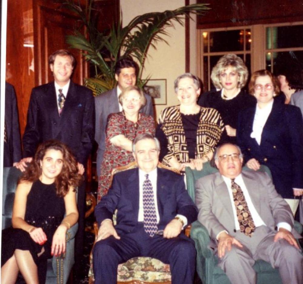 Greek-American Community Services officials during the Eighth Annual GACS Heritage Awards Dinner held on October 21, 1994 at Ambassador West, Chicago. L-R: Seated: Athanasia Papadopoulos (GACS vice president and dinner chairman), Chris Tomaras (GACS Advisory Board co-chairman), Charles Mouratides (GACS Board member). Standing: John Psiharis (GACS co-founder and executive director), Kostas Zografopoulos (GACS Board member), Evangeline Mistaras (GACS Board president), Shirley Sachs Mouratides, Eleni Sotos (GACS Advisory Board member) and unknown.