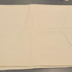 Twin bedspread made of cotton. Fabric is offwhite and has a seersucker pattern and very thin material. Seersucker pattern alternates between different levels of thickness in the stripes.