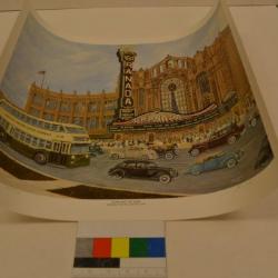 The signature characteristics of his works are vibrant colors, exquisite detail and historical correctness of every image. He is known primarily as a nostalgia artist. Jim estimates that over the years he has completed 130-150 works of art. During his career, Jim has completed two different series of paintings of which he is particularly fond. One series includes five Chicago theaters painted during their heydays of the 1940s: the Grenada, Marbro, Chicago, Uptown and Paradise. His baseball stadium series includes Wrigley Field, Old Comisky Park, Briggs (Tiger) Stadium, Crosley Field, and most recently in 2002, Ebbets Field in Brooklyn.