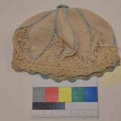 Donated by Dorothy Kotsakis. The cap was handmade and worn by Pelagia Harris (nee Christodolou). Pelagia wore the cap while doing house chores to protect her hair.