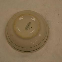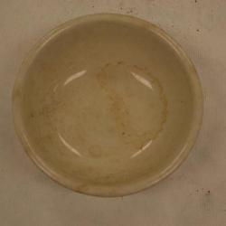 The interior of the bowl is a plain white, but has a few stains on it from age and storage. Most of the stains are on the top lip, but none of them are very large.