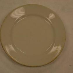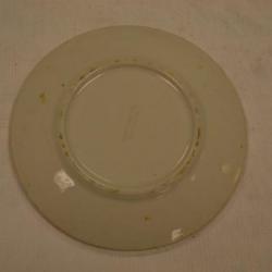 This white plate is smaller and circular. It is completely plain with no design except for the maker's notation on the back. This reads " Cook China Co. Trenton, N.J." and is merely an indentation in the plate, there is no color in the lines. The finish is a shiny white.