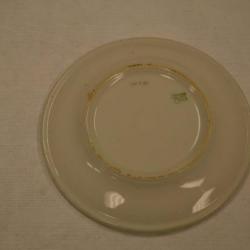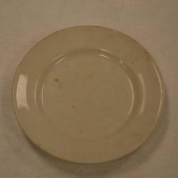 This white plate is smaller and circular. It is completely plain with no design except for the maker's notation on the back. This reads " Cook China Co. Trenton, N.J." and is merely an indentation in the plate, there is no color in the lines. The finish is a shiny white.