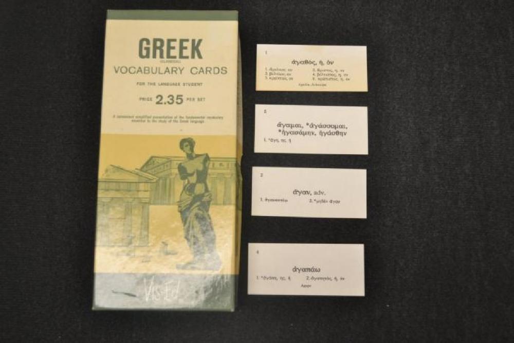 These cards originally belonged to the owners grandfather, then her father, and then they were given to the doner. This is how she would have had to learn Ancient Greek.