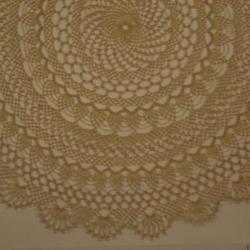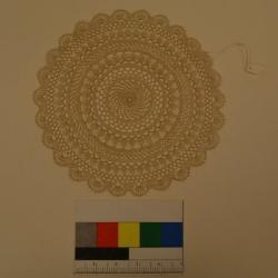 Donated on behalf of Cleo and Barootes Guigulis by Celia Kachmarski. The hand made doily was made by the donors mother Anastasia Barootes, circa 1930-1960.
