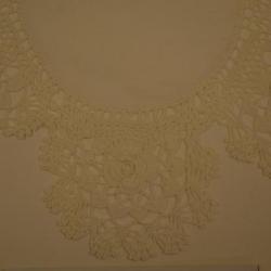 Donated on behalf of Cleo and Barootes Guigulis by Celia Kachmarski. The hand embroidered doily was made by the donors mother Anastasia Barootes, circa 1930-1960.