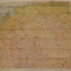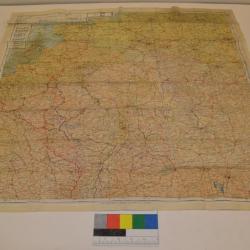 Donated by Pauline Kalogeras. The map was used to help navigate during flight during WWII in the European theater. Chris was a radio operator and gunner in the 401 Bomb group.