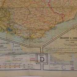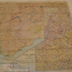 Cream and colored silk map. The silk is waterproof in case of water landing. The map is double sided. One side is South East France and Germany. The other side is Holland and Belgium. The map is color coded. On each side of the map there is also legend and scale.